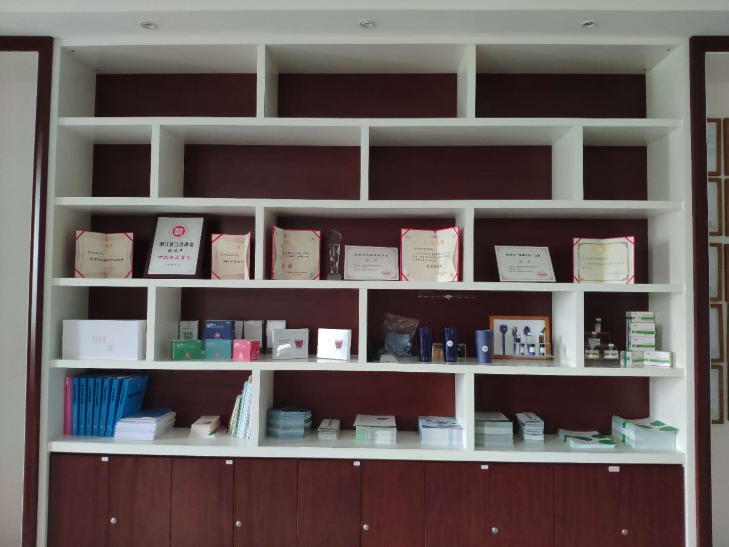 外宣墙区域:及时更新,相框干净无灰、排列整齐;样品机打标识贴;证书干净无灰、证书及时更新。等等。