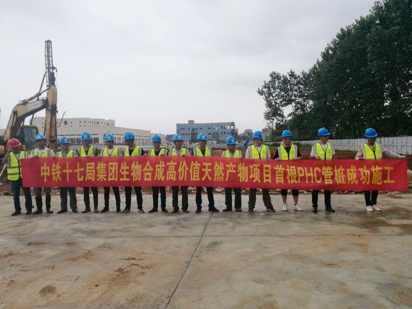 7月16日,由中铁十七局集团建设的德赢vwin体育生物合成高价值天然产物项目首根PHC管桩成功施工!