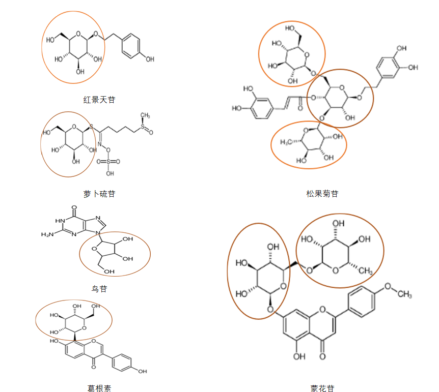糖是自然界最为丰富的一种的天然产物,可分为单糖、寡糖、多糖等。糖在生物的生命活动中不可或缺,是一切生命体维持生命活动所需能量的主要来源。除了作为能源物质以外,糖还是大多数药物的活性成分之一。糖对药物的影响是正向的,但是它表达的活性不高且较为单一,这也导致其市场应用价值不高,因此,相关研究人员对糖进行了修饰,得到其衍生物—糖苷化合物。