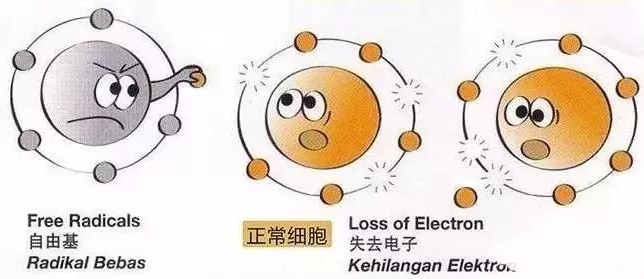 自由基是1832年德国化学家Von Liebig在化学反应中最先发现并命名的,也称游离基。自由基是指原子核外存在不成对电子的原子、原子团或分子。如果按照Harman博士的“自由基衰老理论”来看的话,可能有很多人会认为自由基就是衰老的罪魁祸首,但这其实只是自由基的负面作用被放大化了而已。