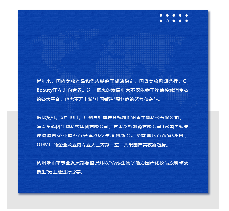 不过,也正是这种前所未有的压力敦促了国内原料商加速创新——化妆品原料国产化势在必行。德赢vwin体育主动去“啃”这块硬骨头,致力于研发更高品质,更多功效的绿色原料,助力国货发展。