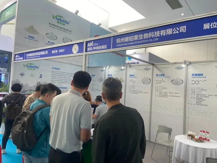第21届世界制药原料中国展6月19日在上海新国际博览中心开幕。德赢vwin体育生物也参与此次展会,展位吸引了众多观众的目光,成为本次展会的亮点。我们带来了自主研发生产的医药原料烟酰胺、羟基酪醇、咖啡酸、原儿茶酸等产品,客户可以在展台上近距离观察产品颜色和品质,更好地挑选自己需要的产品。