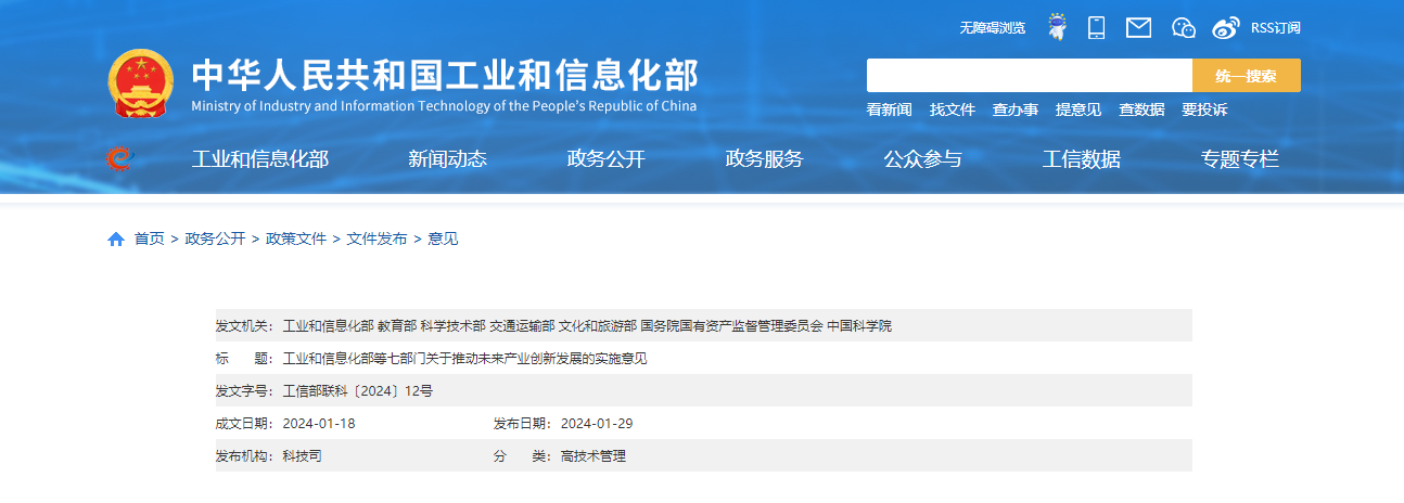 29日,工信部工业和信息化部、教育部、科学技术部 、交通运输部、文化和旅游部、 国务院国有资产监督管理委员会 、中国科学院等七个部门,发布关于推动未来产业创新发展的实施意见,全面布局未来产业,推动合成生物、生物制造、生物育种、生物质能等前瞻新赛道,加快传统产业转型升级。