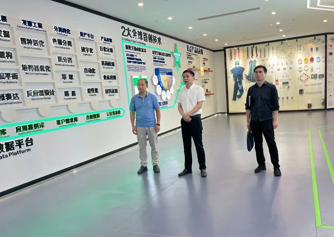 8月6日,赣江新区创新发展局副局长张晓峰、科创城创新发展部副部长钱学斐一行领导莅临德赢vwin体育生物制药进行参观考察。德赢vwin体育总经理叶芳胜携团队全程陪同,先后参观了德赢vwin体育合成生物学、质量中心、在建产线展厅,并详细介绍了公司的科研成果、产业概况、团队建设、经营情况以及战略规划等企业概况。