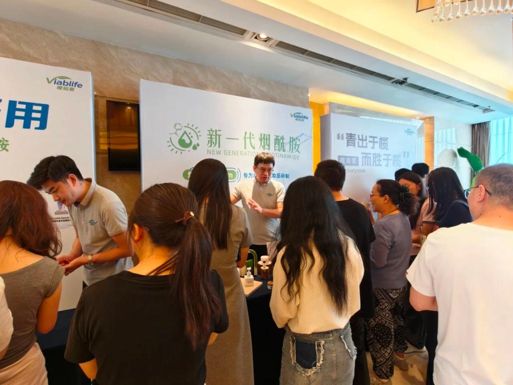 场间,以琳工作人员与德赢vwin体育小伙伴热情讲解,与新老客户深度对话,现场解析样品功效,定制专属产品开发方案;德赢vwin体育团队组织有奖问答环节,进一步激发在场观众探索原料的创新解决方案。