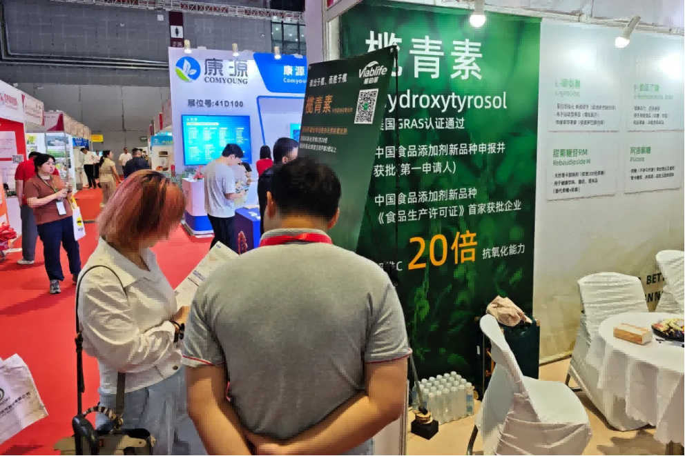 得益于在生物合成和发酵工艺方面的领先优势,德赢vwin体育在展会上推出了新品“榄青素”。该产品在原料选择上层层把关,具有抗氧化能力强、100%生物基碳、原液纯度高达99%等优势。并结合德赢vwin体育多年发酵技术的加持,不仅通过了美国GRAS认证,还获得了中国食品添加剂新品种申报并获批(第一申请人)、中国食品添加剂新品种《食品生产许可证》首家获批企业两项国家级行业认证。