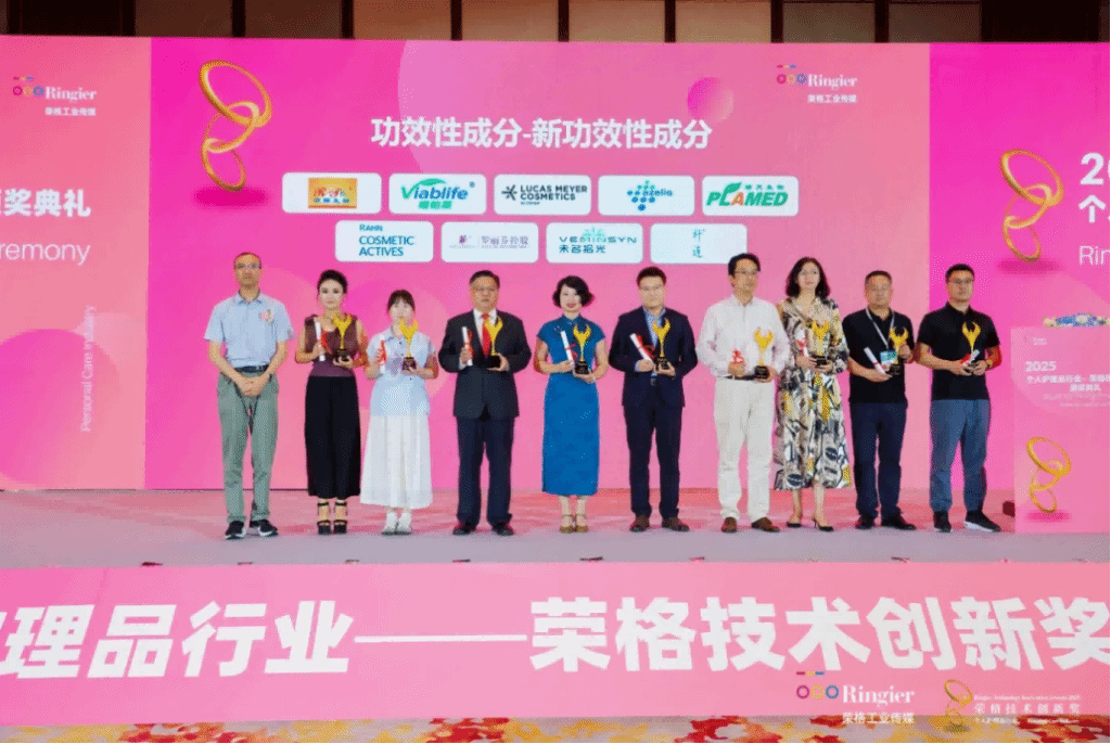 同期,个人护理品行业——荣格技术创新奖颁奖现场,德赢vwin体育创新原料“新一代烟酰胺”、“榄青素”在祛斑美白成分、新功效性成分两个领域皆有上榜,有力展现企业在行业内的广泛影响力和市场认可度。