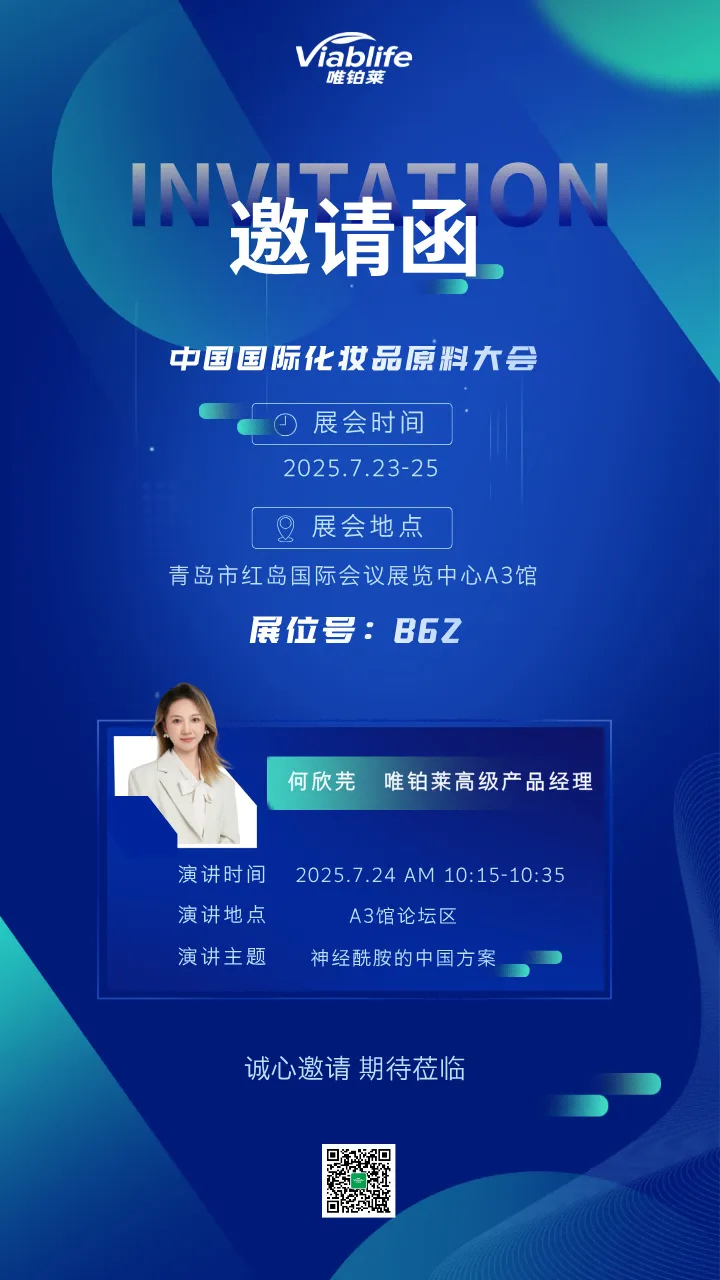 此次展会,德赢vwin体育秉承”科技创造更多美好“的使命,同客户分享“有料·好用”神经酰胺系列、新一代烟酰胺、榄青素、红没药醇、依克多因、角鲨烷等日化领域的最新研发成果及市场应用。我们诚挚邀请您莅临 2025第三届CICIS年度盛会,共同探讨技术革新趋势,携手见证绿色护肤新时代!