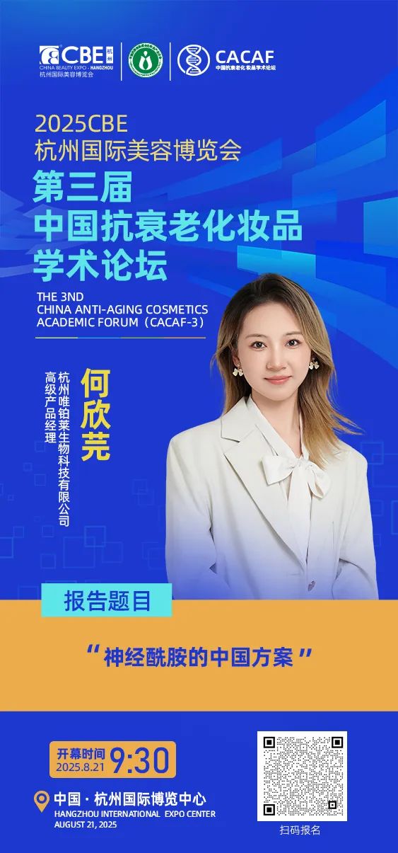 德赢vwin体育高级产品经理——何欣芫女士将在会上作《神经酰胺的中国方案》主题报告,德赢vwin体育邀您莅临本次会议,共同探寻抗衰老化妆品新质生产力,探索符合中国国情的抗衰老化妆品之路。